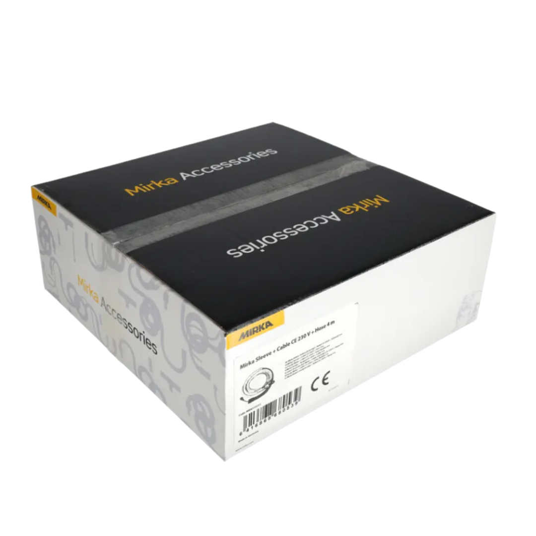 Dayanıklı kılıf içinde konnektör ve CE 230V kabloyla önceden birleştirilmiş hortum. Kılıf kullanımı kolaylaştırır ve çalışma yüzeyini çizilmelere karşı korur. Mirka® DEROS, Mirka® DEOS ve Mirka® LEROS ile kullanılmak üzere tasarlanmıştır. Elektrik iletken (≤ 10⁶ Ω/kare).